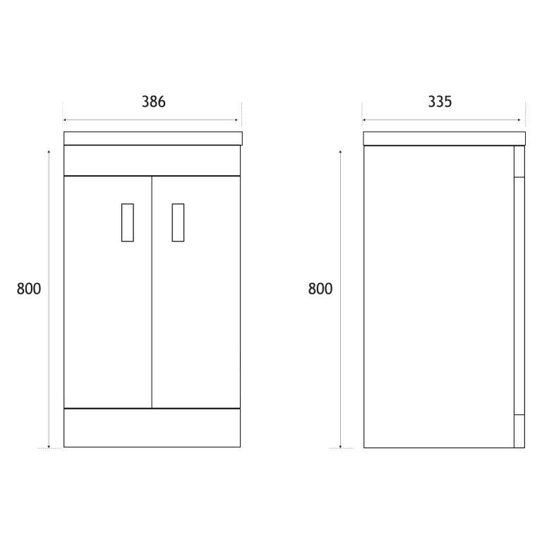 - 335mm (L) x 386mm (W) x 800mm (H)
