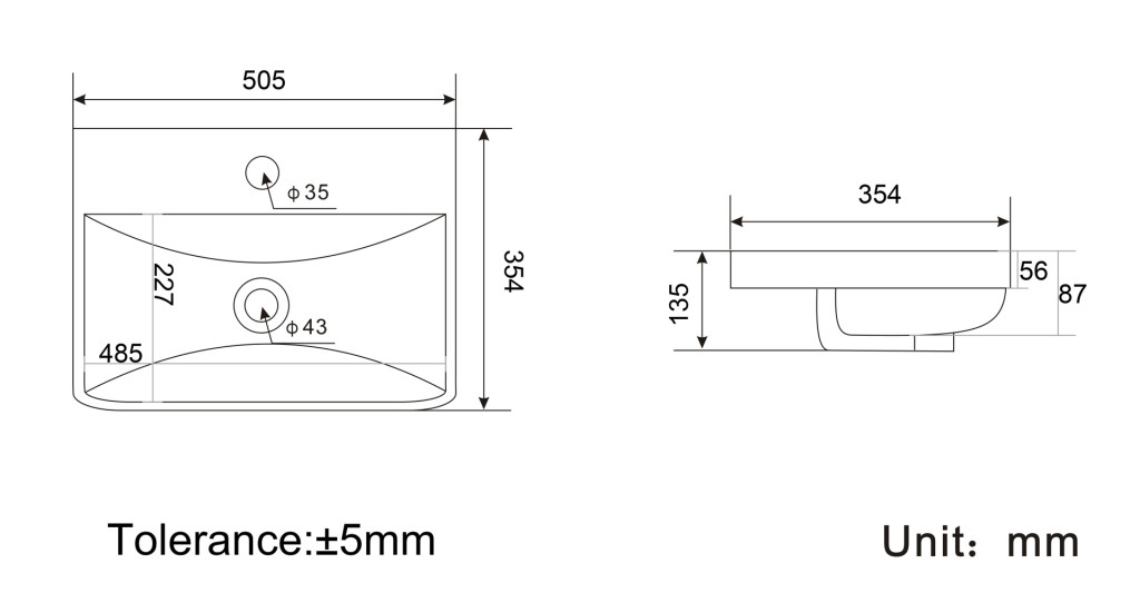 Cavone II Ceramic Basin only 355x705 - White (Vanity unit & Tap Sold Separately)