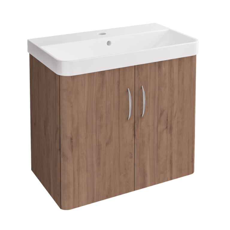 Cavone II 700 Wall Hung Door Unit only - Medium Oak (Basin & Tap Sold Separately)