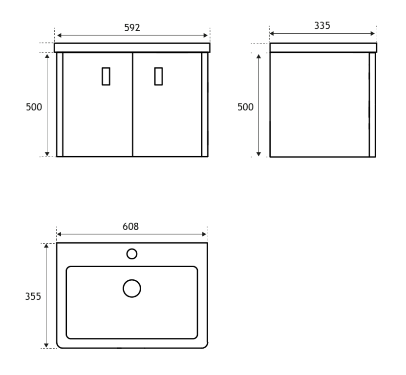 - 335mm (L) x 592mm (W) x 500mm (H)