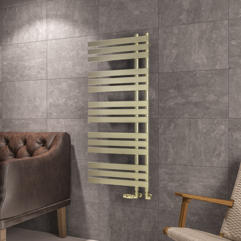 Download (0.55 MB)New Leonardo 1200 x 500 Towel rail. The single sided pipes on this wonderfully stylish Leonardo rail allows maximium hanging space. With its reversible design, Leonardo towel rail is available in chrome and brushed brass.