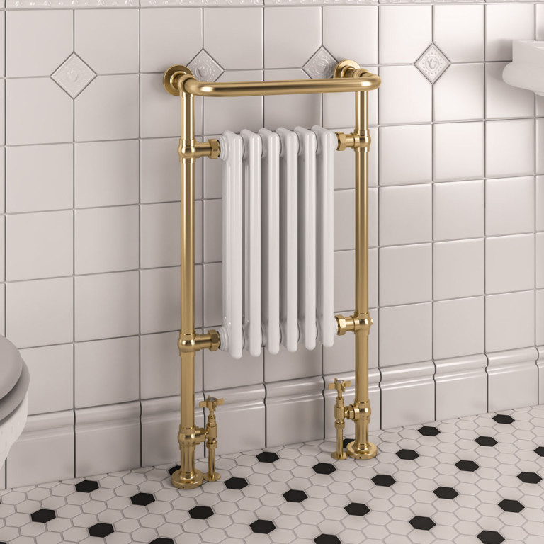 Isbourne 940 x 507 Towel rail - Brushed Brass/Gloss White