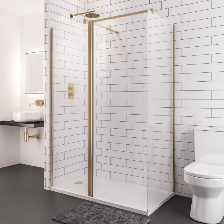 Vantage 2000 8mm Walkin 1600x2000 Shower Panel - Brushed Brass