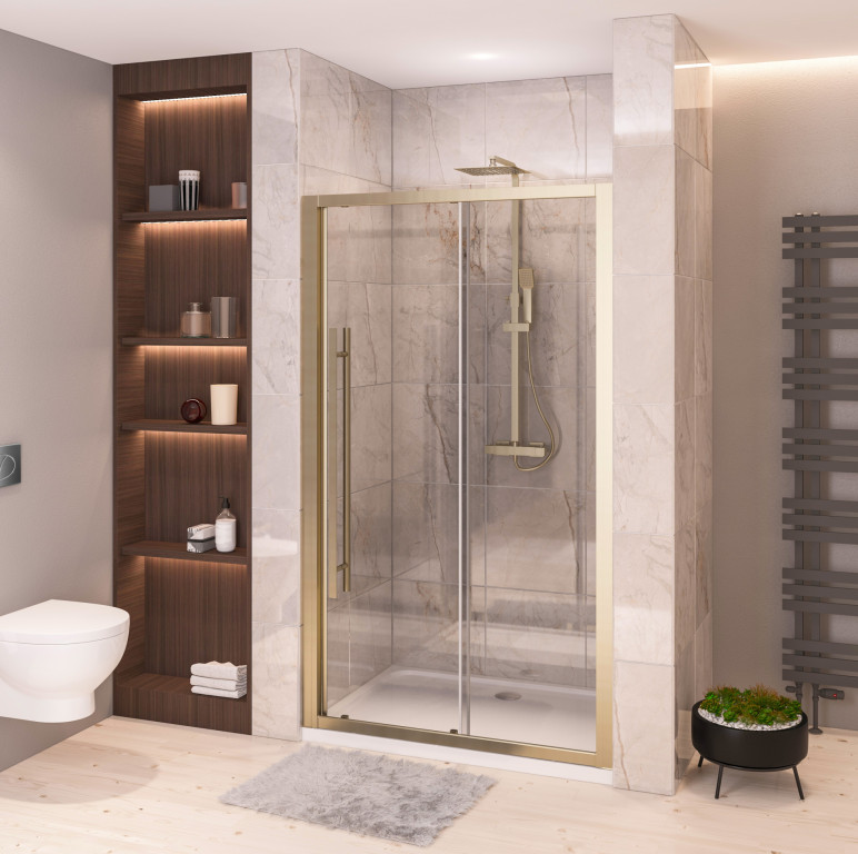 • Shower Enclosures Shower Doors Sliding Doors Vantage 2000 1500 slider Shower Door - Brushed Brass