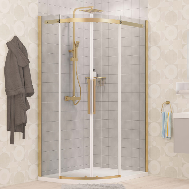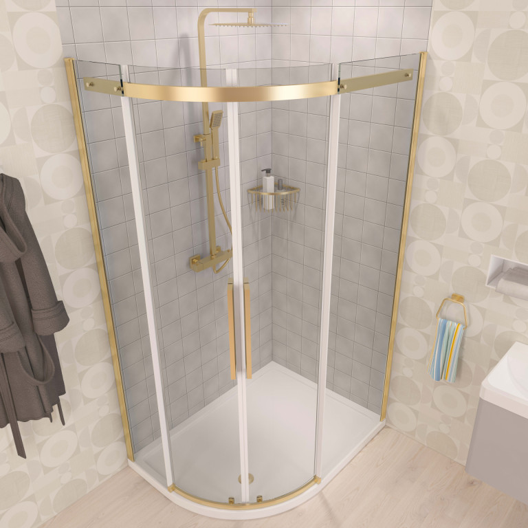 • Shower Enclosures Offset Quadrant Enclosures Corniche 2000 Offset Quadrant 900x800x2000 Left Hand Shower Enclosure - Brushed Brass