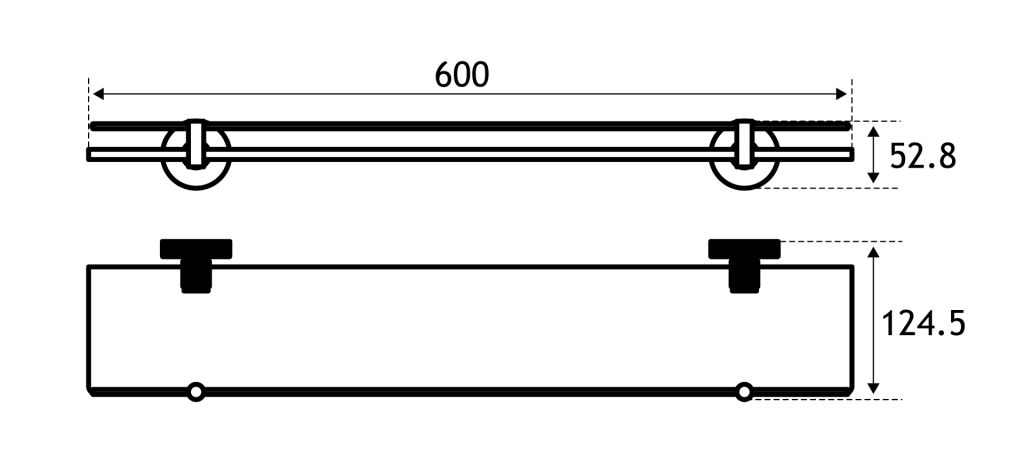 - 124.5mm (L) x 600mm (W) x 52.8mm (H)