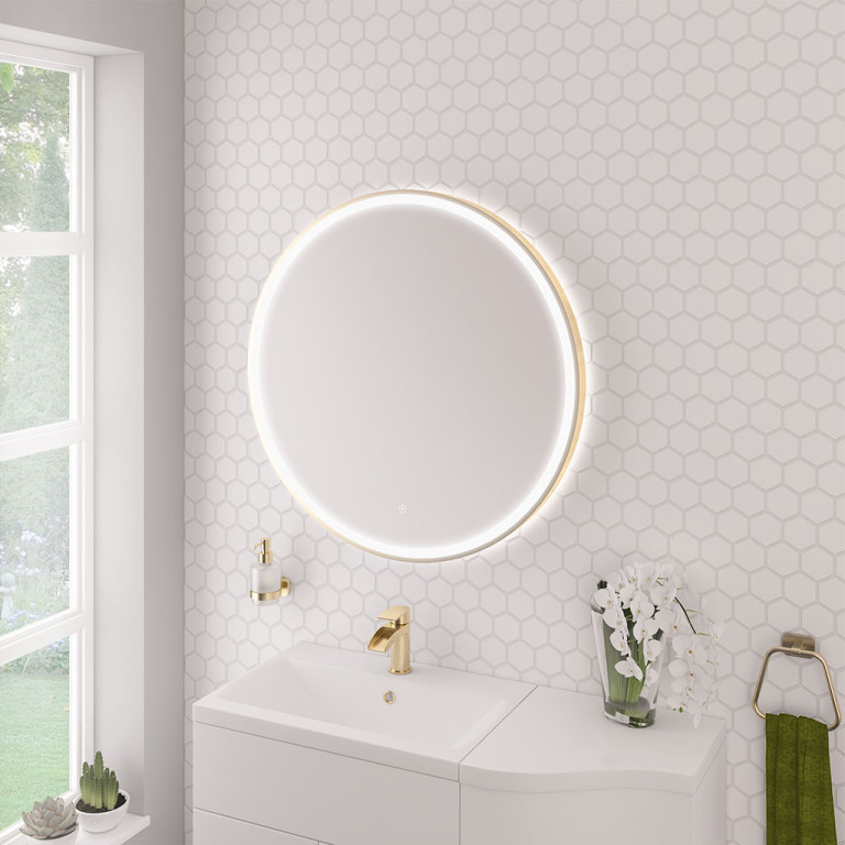 Levone 800x800 LED Framed Bathroom Mirror - Brushed Brass