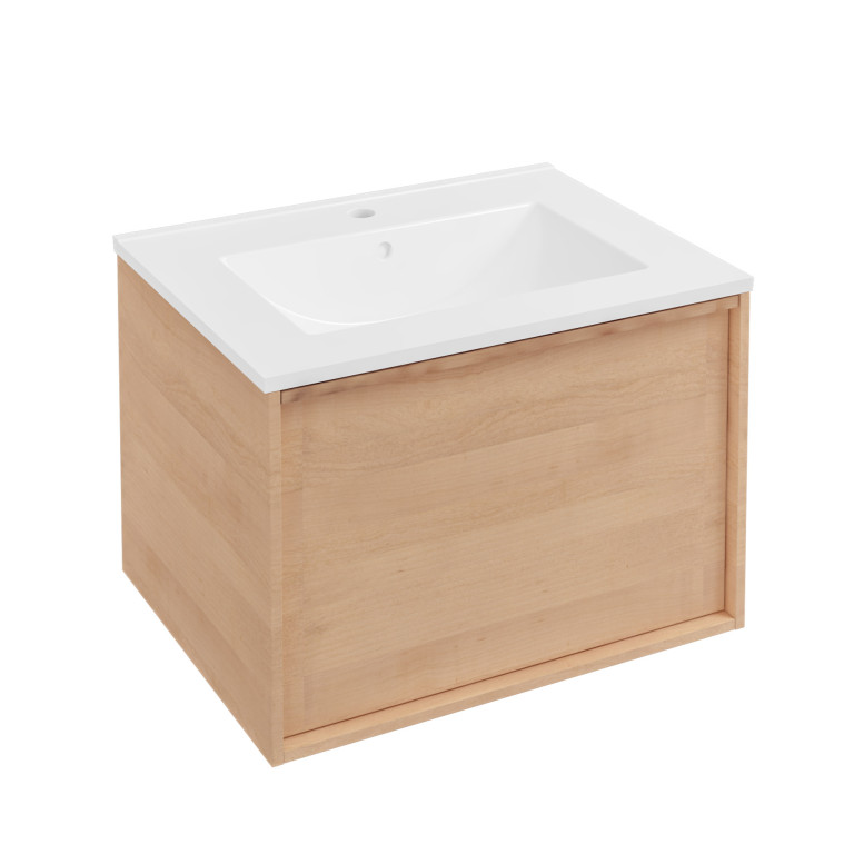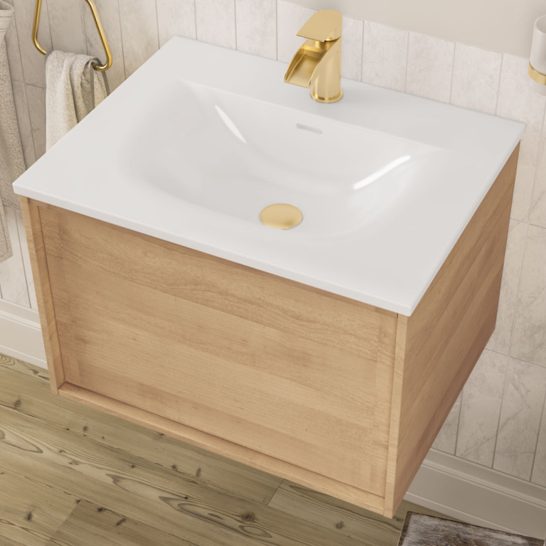 Ravensbourne 600 Wall Hung Drawer Unit only - Natural Oak (Basin & Tap Sold Separately)