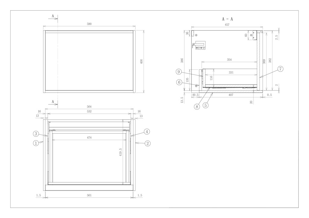 - 457mm (L) x 590mm (W) x 400mm (H)