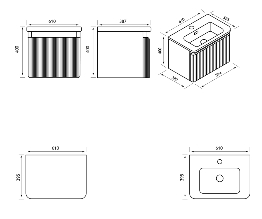 Cavone 60cm Ceramic Cabinet Basin only 1 Tap Hole - Gloss White (Vanity unit & Tap Sold...
