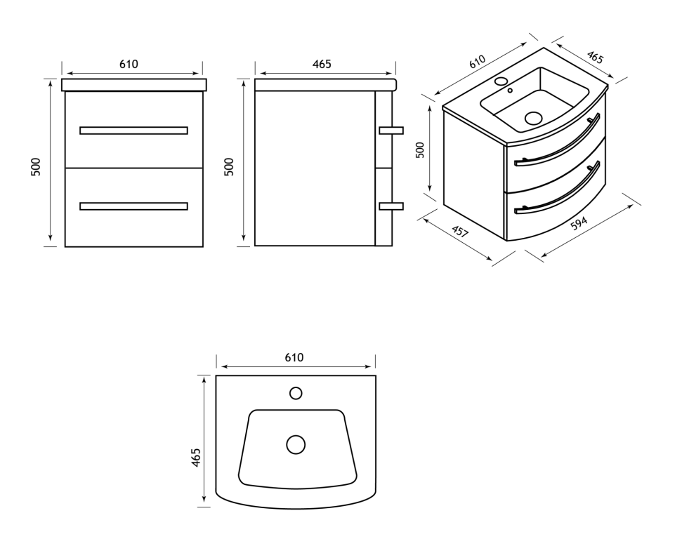 Cavone 60cm Ceramic Cabinet Basin only 1 Tap Hole - Gloss White (Vanity unit & Tap Sold...